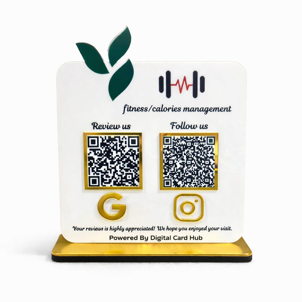 Leaf Theme Customized UPI Payment Acrylic Standee ke saath.